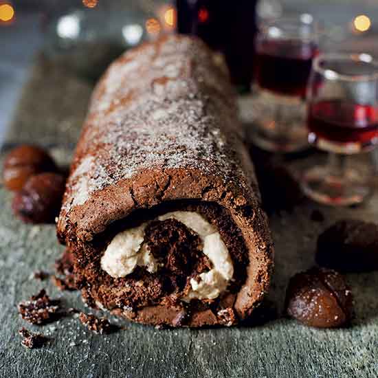 CHOCOLATE ROLL WITH CHESNUTS AND WHIPPED CREAM